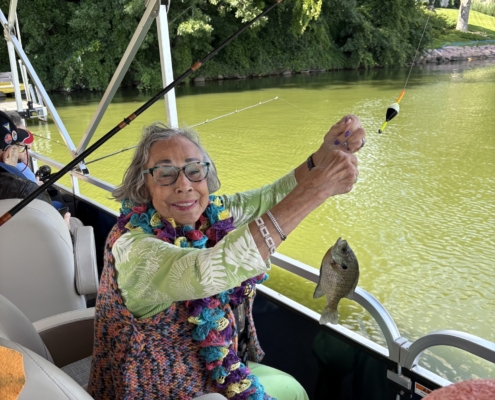 Our trained volunteer captains and crew members create a safe, welcoming, and supportive environment both on and off the water. We provide a fully equipped pontoon boat, fishing gear, bait, and personalized assistance, ensuring every guest can relax and enjoy the experience. Whether it’s helping land a first fish, sharing stories, or simply taking in the beauty of the lake, we focus on creating meaningful moments and lasting memories. These outings are more than just fishing trips, they are opportunities to build connections, foster relationships, and create enjoyable times outdoors.